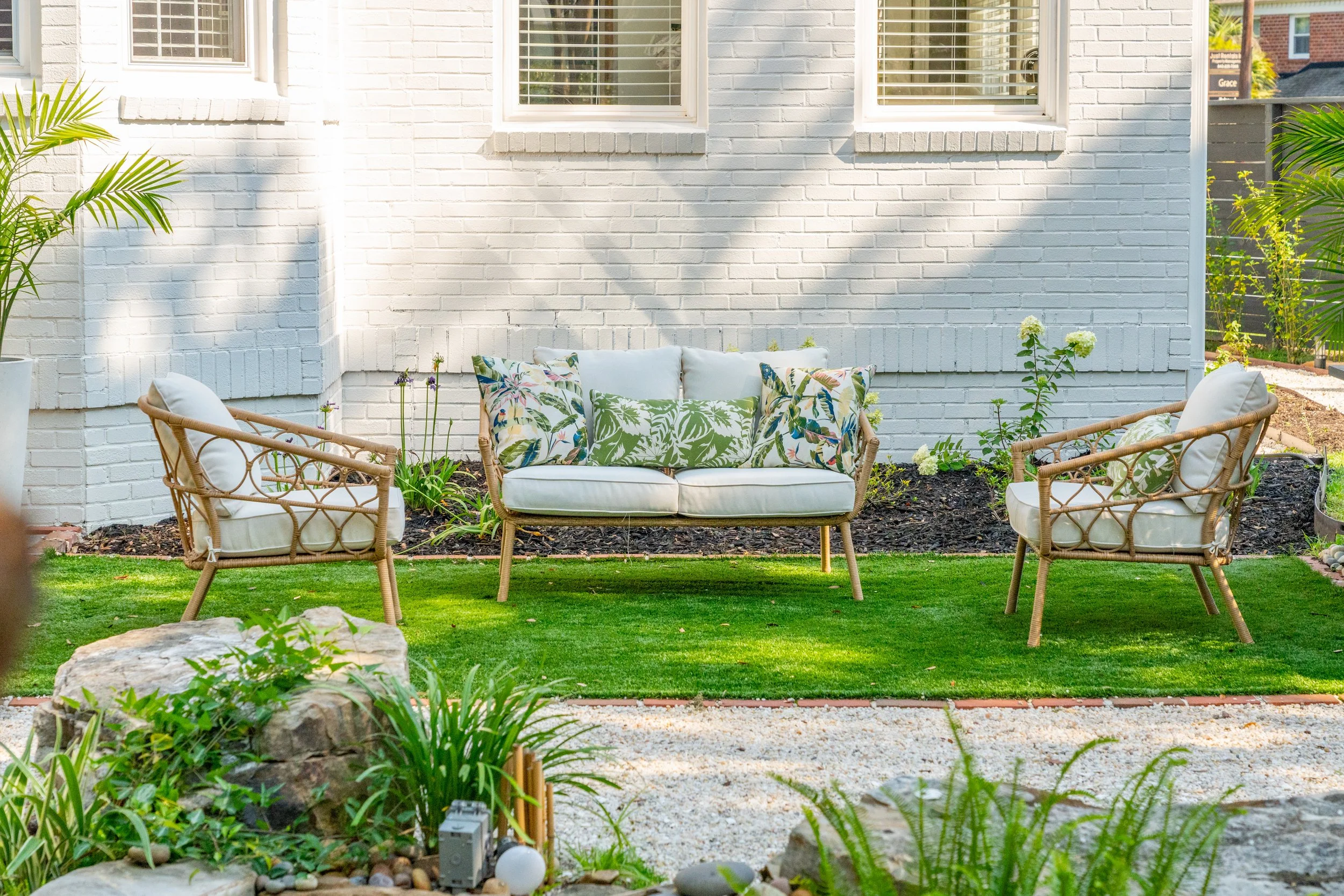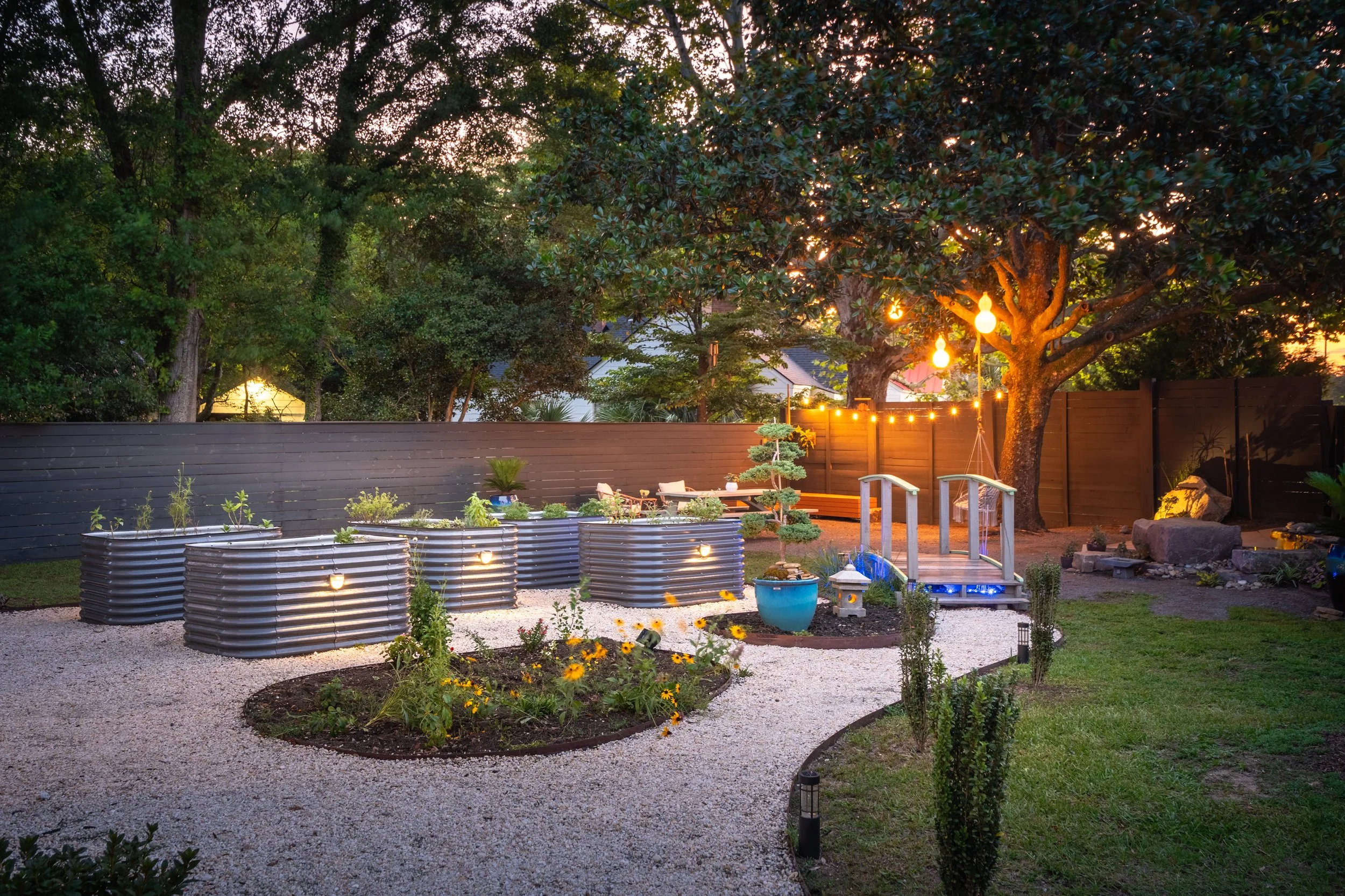 Built in 1947, The Southern Zen™'s many windows allow for immense amounts of natural light, creating an open and airy feel throughout. The outdoor space is a Japanese inspired Zen garden including handmade natural water features, custom built seating, a custom built Japanese style foot bridge, and a fire pit option.